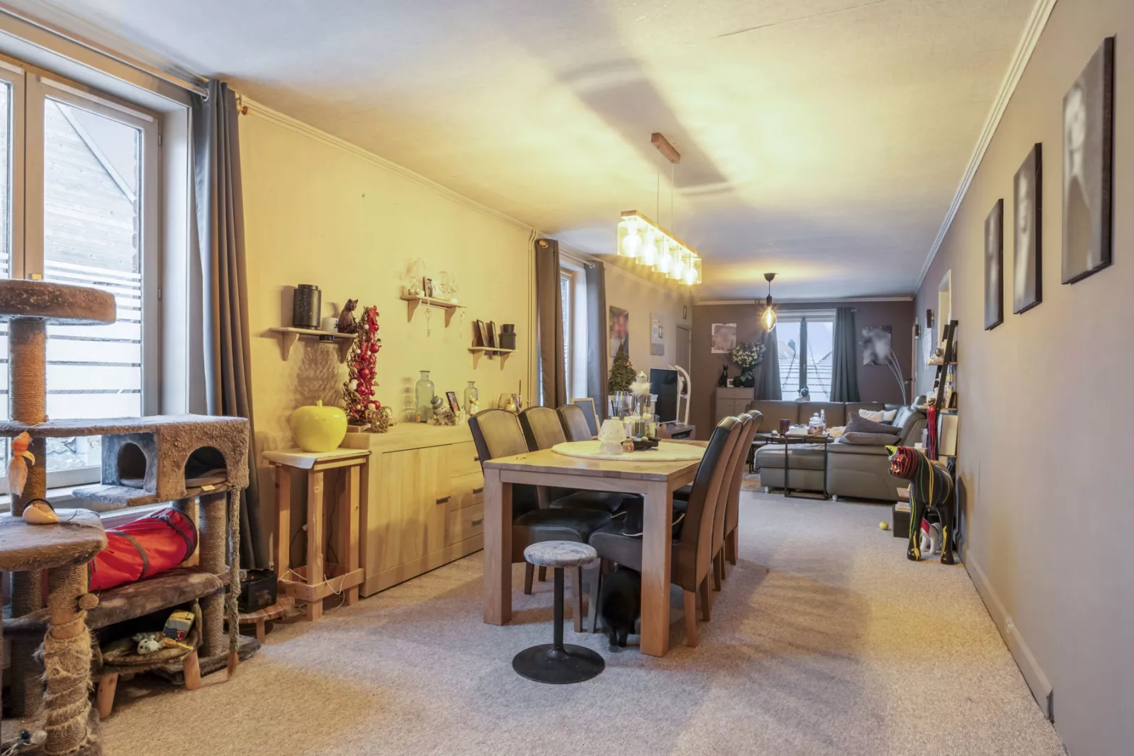Het gelijkvloers omvat een goed draaiend café met een aansluitende polyvalente zaal, ideaal ingericht voor snooker, darts en diverse feestelijkheden. Deze ruimte vormt een aantrekkelijke en stabiele bron van huuropbrengsten.