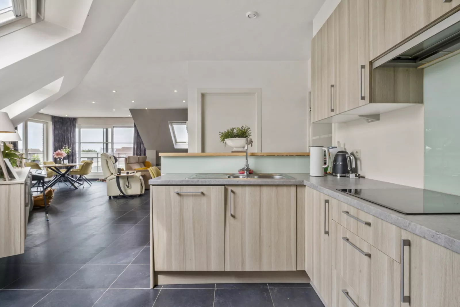 Gezellige woonkamer van 58 m² met open ingerichte keuken