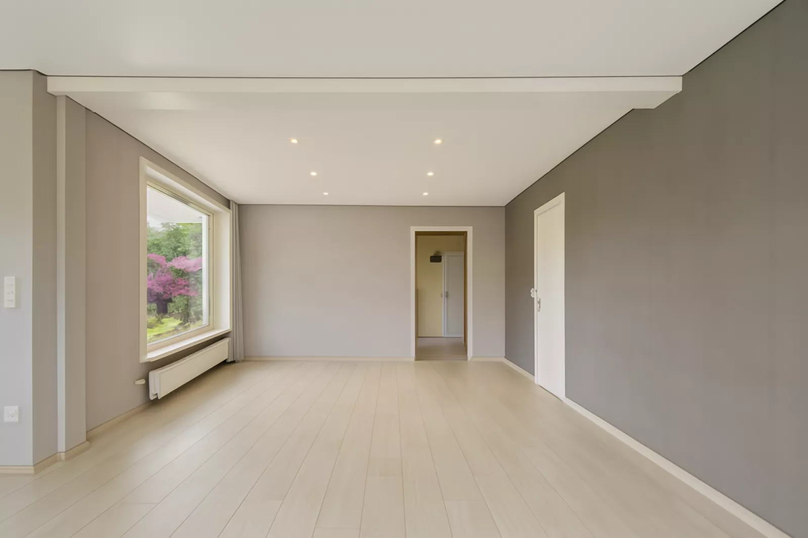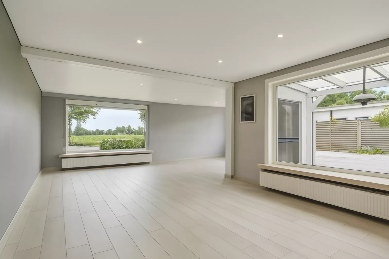 - Ruime, lichtrijke woonkamer met panoramisch zicht op het groen